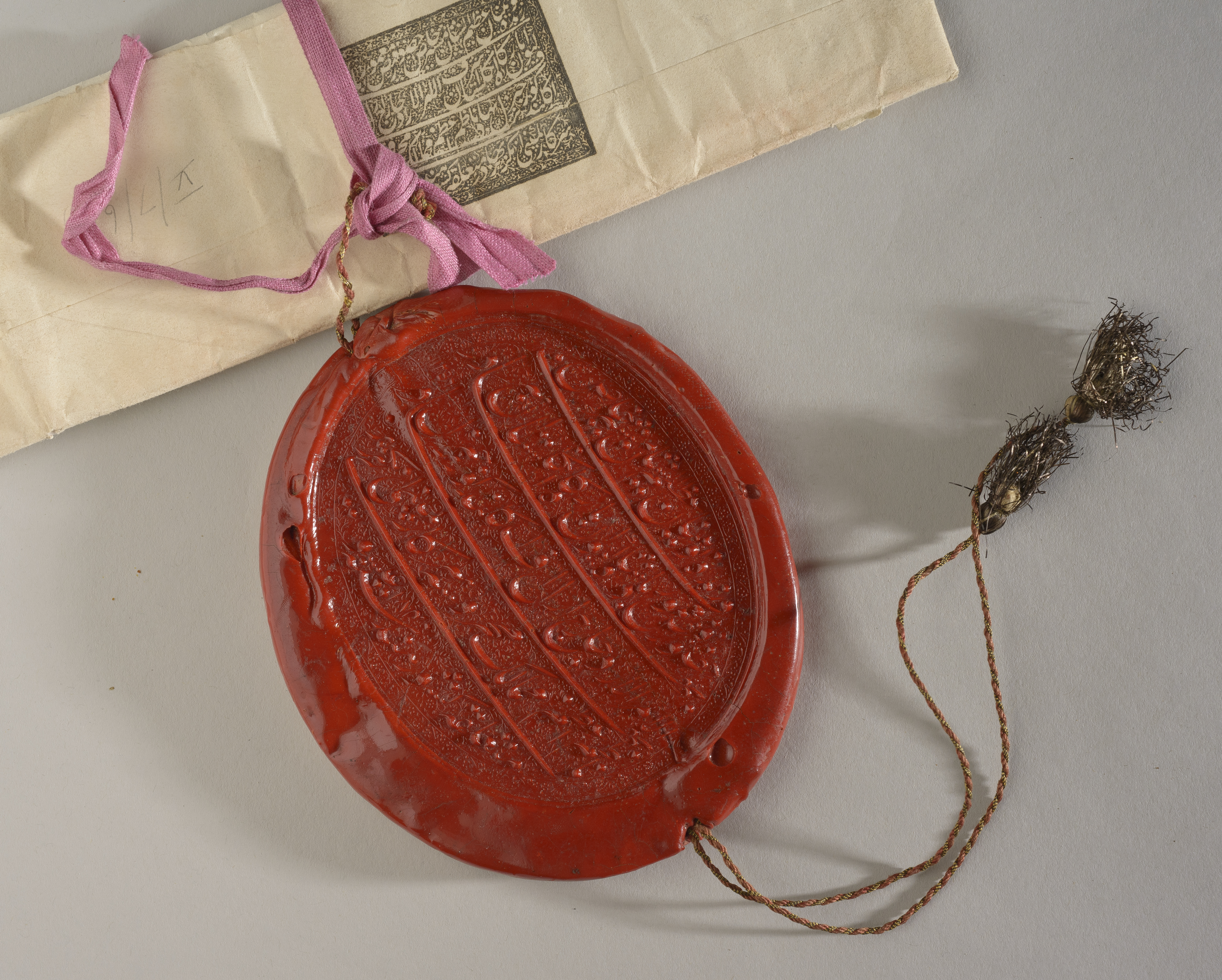 - An object from last years of the East India Company’s administration: the 1840 seal of the Governor General of India, Lord Auckland. It is attached to a letter dated 1842 to Maharajah Sher Singh, thanking him for services rendered in relation to the first Afghan war. The letter and the seal are in Persian, which persisted as a lingua franca in the early years of British rule.