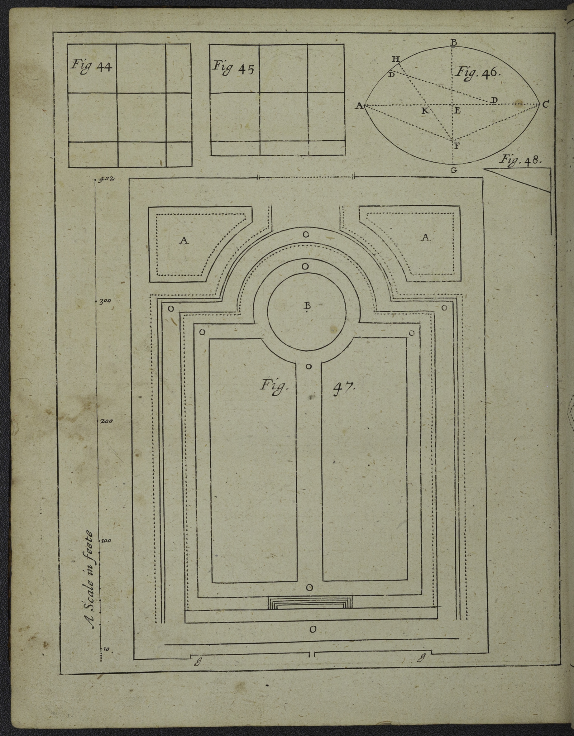 Diagram from The manner of raising, ordering, and improving forest and fruit-trees : also how to plant, make and keep woods, walks, avenues, lawns, hedges, &c. with several figures in copper-plates, proper for the same : also rules and tables shewing how the ingenious planter may measure superficial figures, with rules how to divide woods or land / by Moses Cook ; whereunto is now added that ingenious treatise of Mr. Gabriel Plattes, viz. A discovery of subterranean treasure (London : Printed for Peter Parker, 1679).