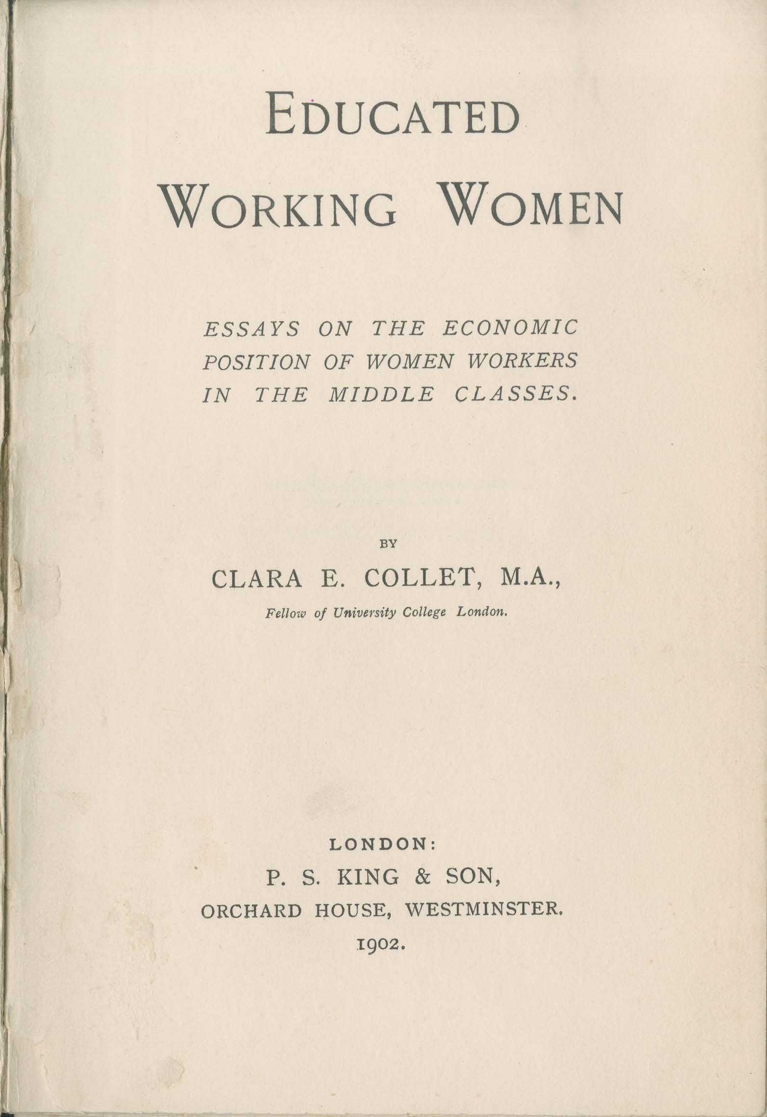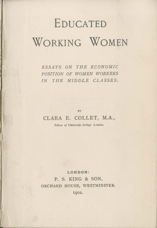 - Educated working women : essays on the economic position of women workers in the middle classes / by Clara E. Collet