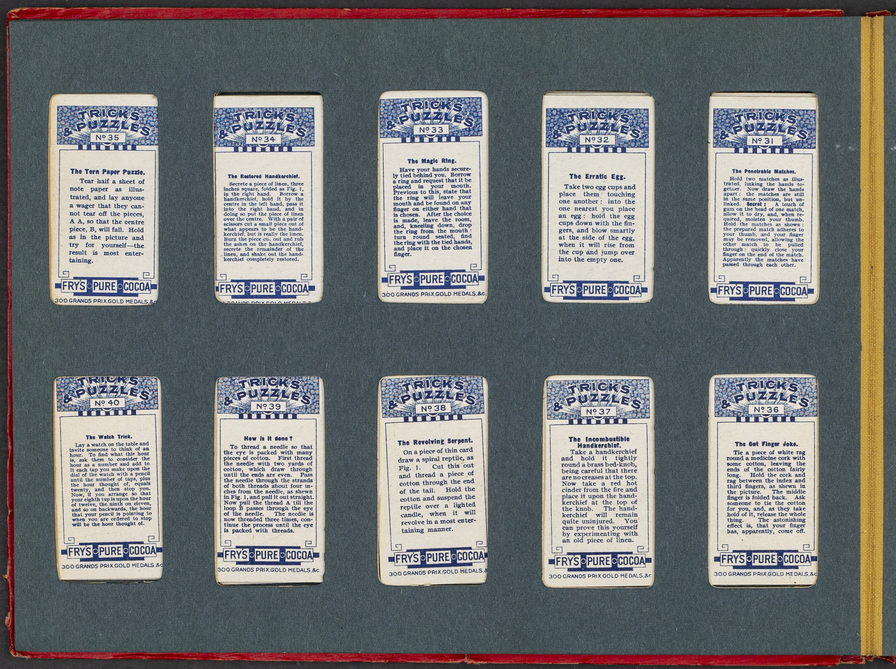- Fry's Cocoa & Chocolate album of cigarette cards depicting magic tricks