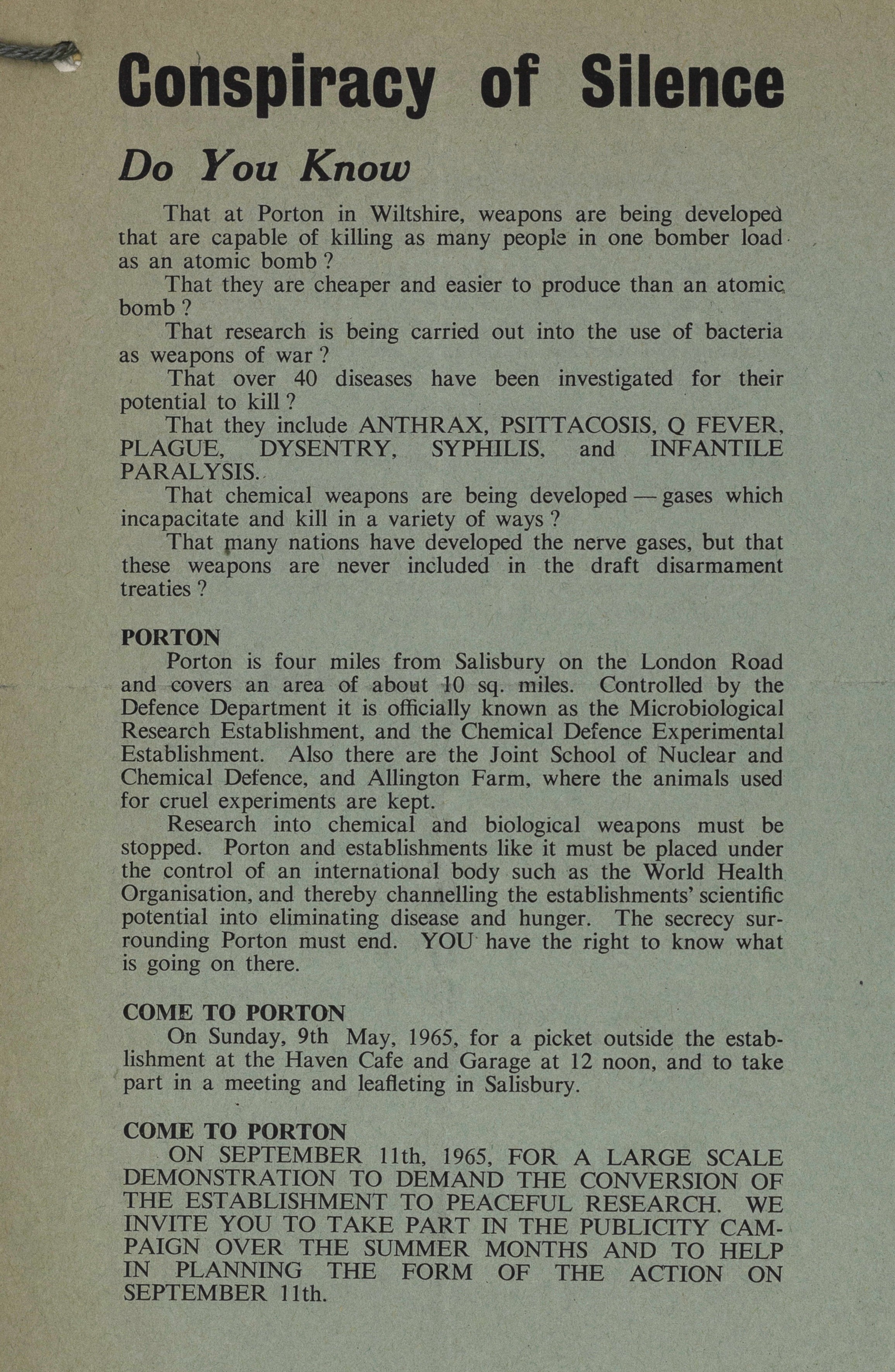 1961-1965. File title, "Committee of 100 incl. Industrial Sub. Cttee. “Voice of N.D.”. Includes papers of London Committee of 100, leaflets and reports about protests and demonstrations. Legal and general briefings for those taking part in non-violent demonstrations, civil disobedience, direct action. Requests for support at Old Bailey trials of protesters. Questionnaire for Committee of 100 Survey.