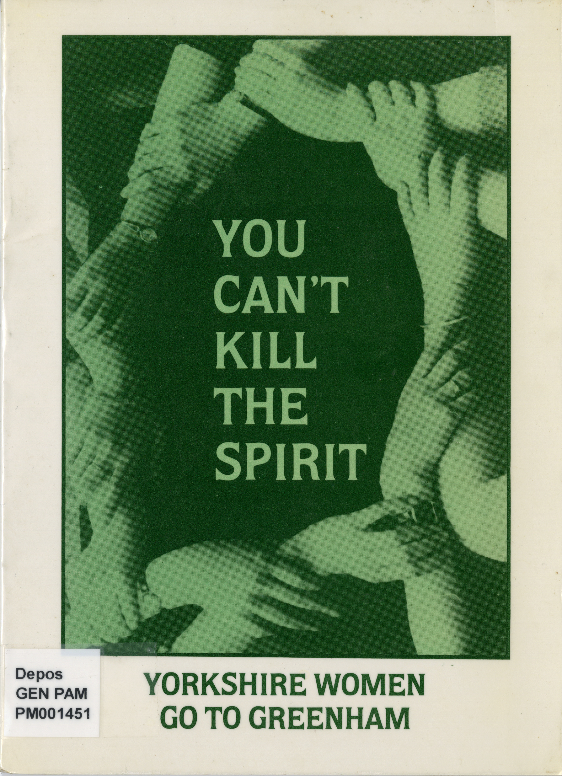 - Cover of You can't kill the spirit : Yorkshire women go to Greenham (Wakefield : Bretton Women's Book Fund, 1983).