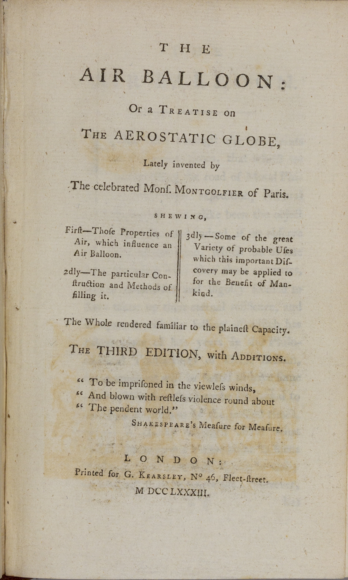 - The air balloon: or a treatise on the aerostatic globe : lately invented by the celebrated Mons. Montgolfier of Paris