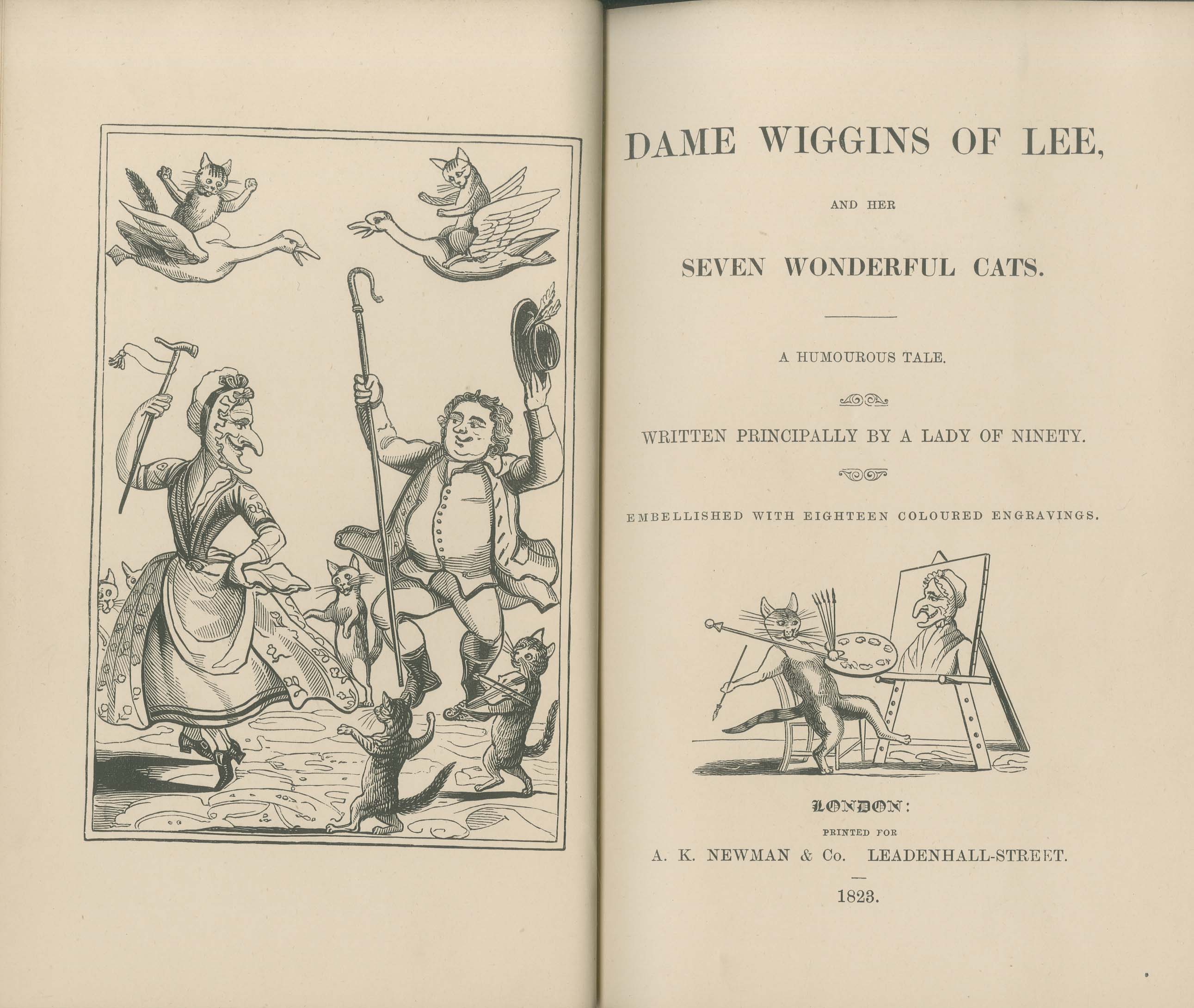 - Dame Wiggins of Lee, and her seven wonderful cats : a humourous tale written principally by a lady of ninety. In the Sterling Library, first and fine editions of English literature.