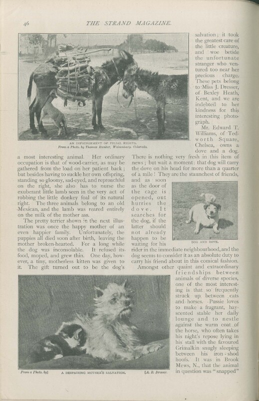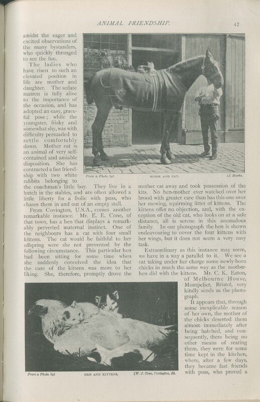 Page from the article Animal friendship by Albert H. Broadwell. In the Harry Price Library of Magical Literature.