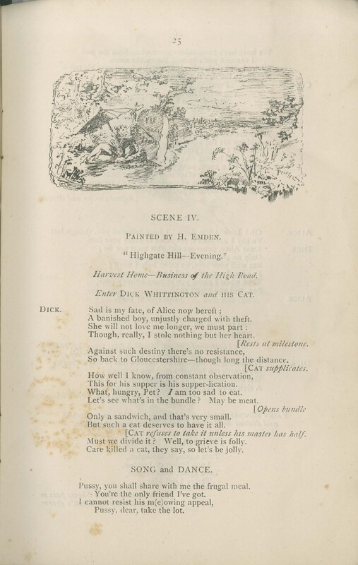 Page from Book of the words of Whittington and his cat : the Drury Lane pantomime, 1884-5. In the Malcolm Morley Collection on 19th and 20th century theatre.