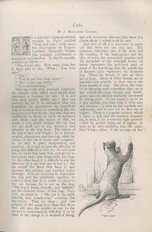 The article Cats by J. Maclaren Cobban from Strand Magazine, Jul-Dec 1891, Vol. II. In the closed Tower stacks.