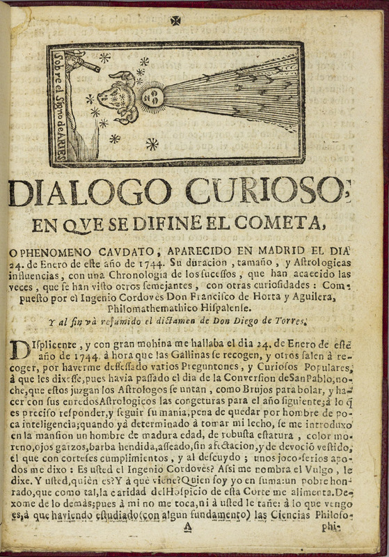 Dialogo Curioso en que se Define el Cometa o Phenomeno Caudato Aparecido en Madrid el dia 24 de Enero de este Año de 1744