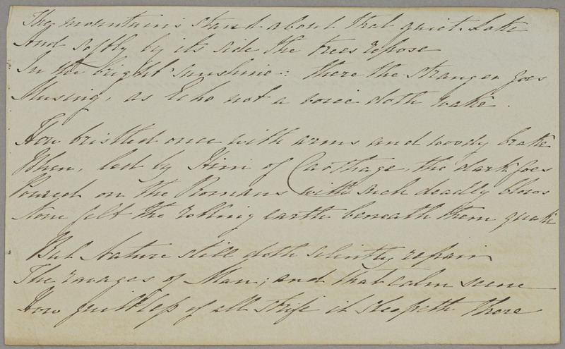 Chronicling journeys made throughout Britain and Europe, Harriet Lewin uses her sketchbook to write down her impressions and capture an image of the new environments she encountered during her travels. She was the daughter of Thomas H. Lewin, lieutenant in colonial India, later wife of MP George Grote, and became an influential political radical activist in 1830s Britain. Throughout this journal of her early life she notes how landscapes can prompt reflection on historical sites and events, making them part of our own memories. Initial research suggests that human memory is affected differently by certain types of weather.