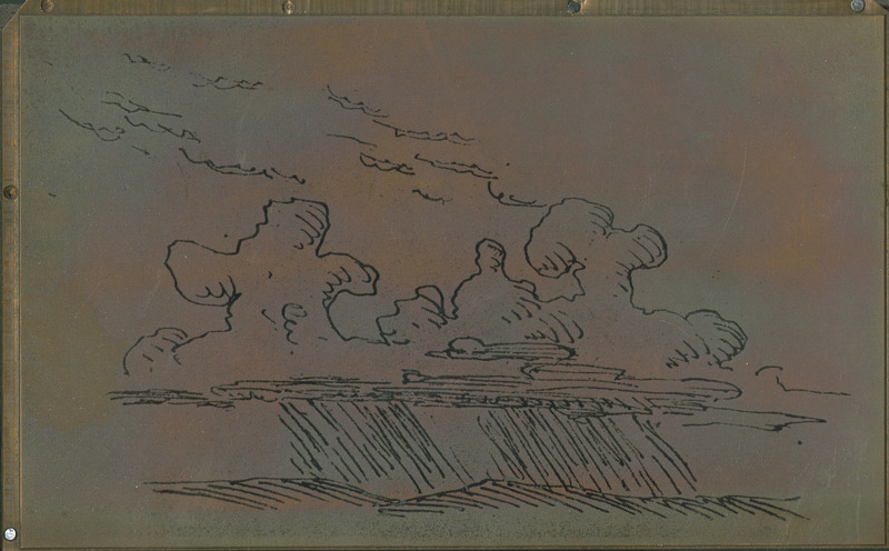 Many artists of the Romantic period were fascinated by clouds and inspired to integrate new scientific findings into their art. These copper plates reproduce two cloud sketches by the German poet, philosopher and scientist Johann Wolfgang von Goethe. When he made the first sketch, he still had little scientific knowledge of meteorology. The 1816 sketch shows three types of clouds identified in Luke Howard’s cloud classification, which he had read about during the same year.