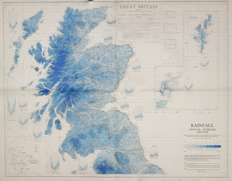 The Royal Meteorological Society’s participation in the International Health Exhibition of 1884 reaffirmed the understanding of the interrelation of health and weather. Besides weather forecasting, the Society set up 82 climatological stations, as shown in this chart, in order to to understand the health implications of different weather conditions, including moisture levels in English seaside towns. The Society also encouraged public participation by displaying a model of a climatological station on the Exhibition’s grounds for “those desirous of organising a station”.