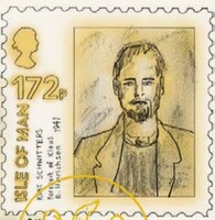 The image included here is adapted from stamp art issued by the Isle of Man featuring internment art, 2010. Learn more about archives which include Hinrichsen's papers.