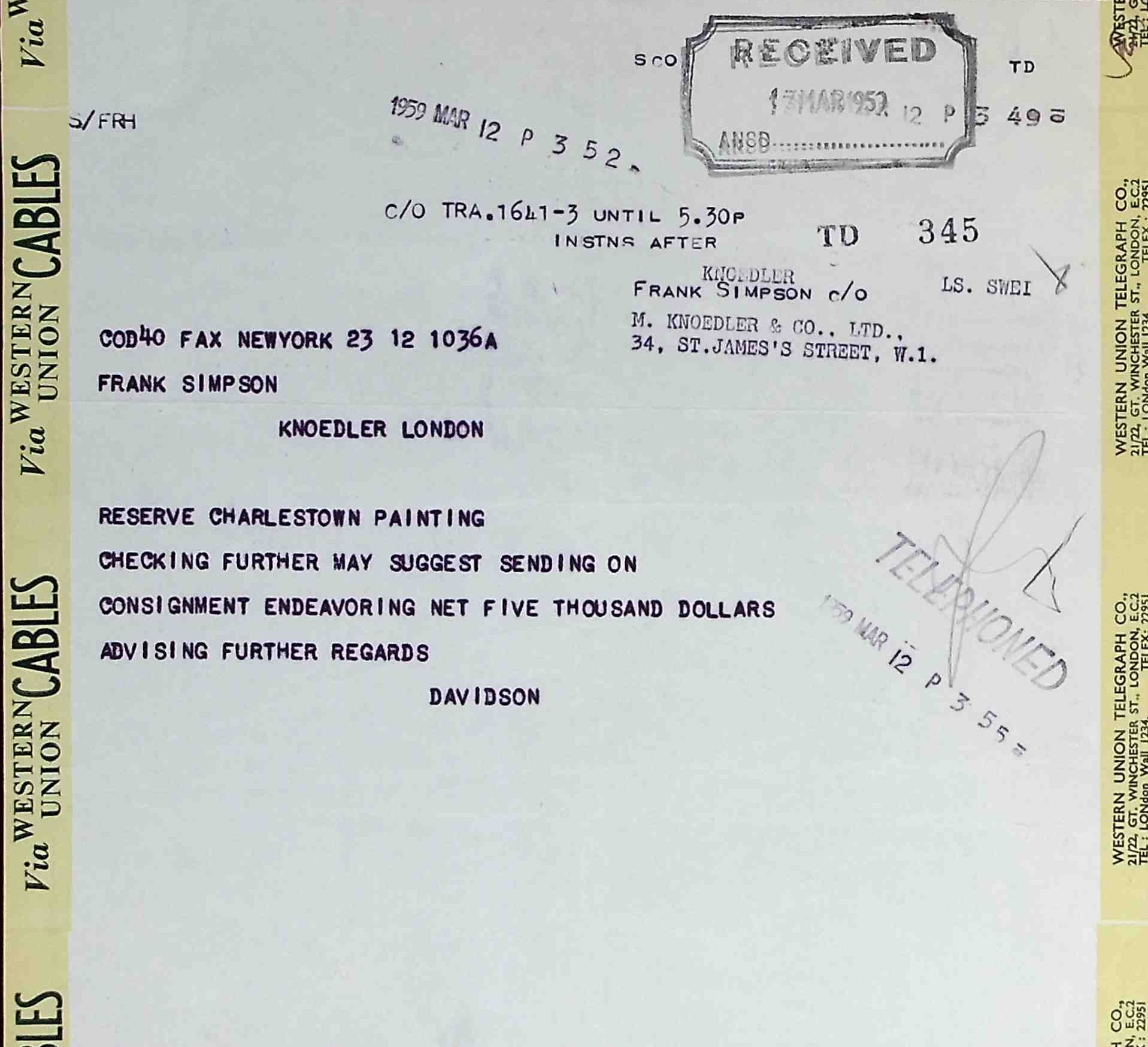 Frank Simpson (1911–2002) was a Librarian and amateur art historian with a long-held interest in taste and the collecting of pictures in England in the eighteenth century, particularly from salerooms. The Paul Mellon Centre holds his archive, which includes records from the London office of M. Knoedler & Co., where he worked during the 1950s–1970s. Much of the material in this archive is unique and contains a wealth of information for those interested in the study of provenance, and collections and collecting during the eighteenth to twentieth centuries.