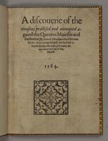 A Discouerie of the Treasons Practised and Attempted Against the Queenes Maiestie and the Realme From the golden age of English pamphleteering of the late 16th century is this account of Francis Throckmorton’s 1584 trial for treason. Throckmorton was part of a Catholic plot to depose Elizabeth I in favour of her cousin, Mary, Queen of Scots.