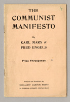Communist Manifesto This is one of the most famous and reprinted pamphlets. Published in German in 1848, it has been translated into numerous languages with lasting political influence worldwide. Senate House Library’s collections include many editions of the manifesto, from the first English edition, rebound in leather covered boards for preservation, to more humble editions. The copy on display, with simple pink paper wrappers, lists one of the two famous authors as ‘Fred Engels’.
