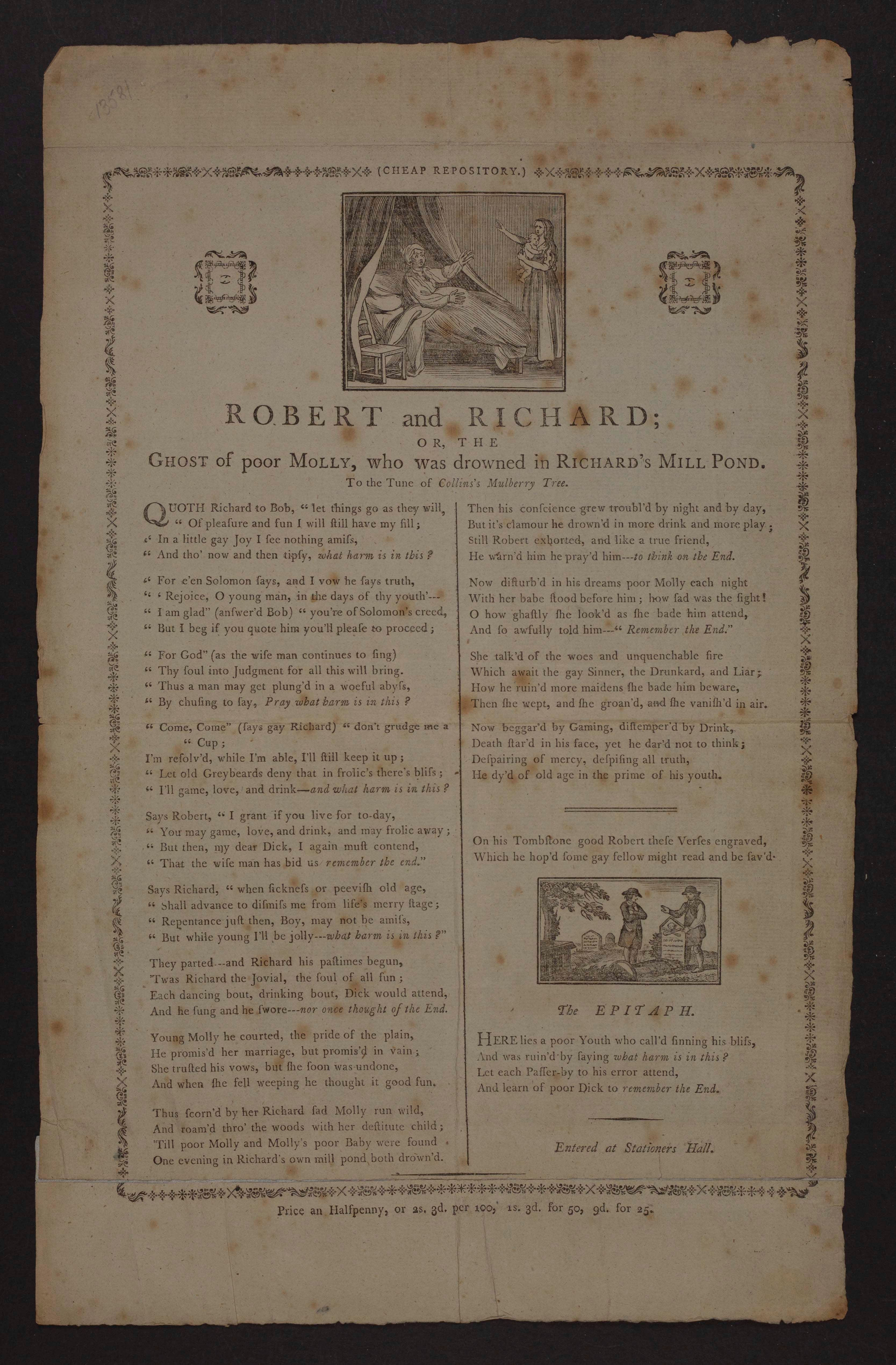 Robert and Richard; or, The Ghost of Poor Molly, Who Was Drowned in Richard's Mill Pond : To the Tune of Collins's Mulberry Tree.