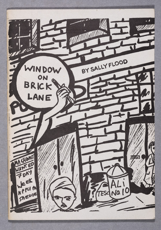 Named for their location in the basement of St George’s Town Hall in Cable Street, The Basement Writers was formed in 1973 by teacher Chris Searle. Sally Flood, who was then nearly 50, was one of a few older writers who joined the group. A factory embroidery machinist and prolific poet, Sally described her verse as being like a diary. This is exemplified by this pamphlet, in which it is noted that most of her work was written “at the factory, from her seat with its window facing Brick Lane”. The illustrations in this pamphlet are by Patricia Flood.