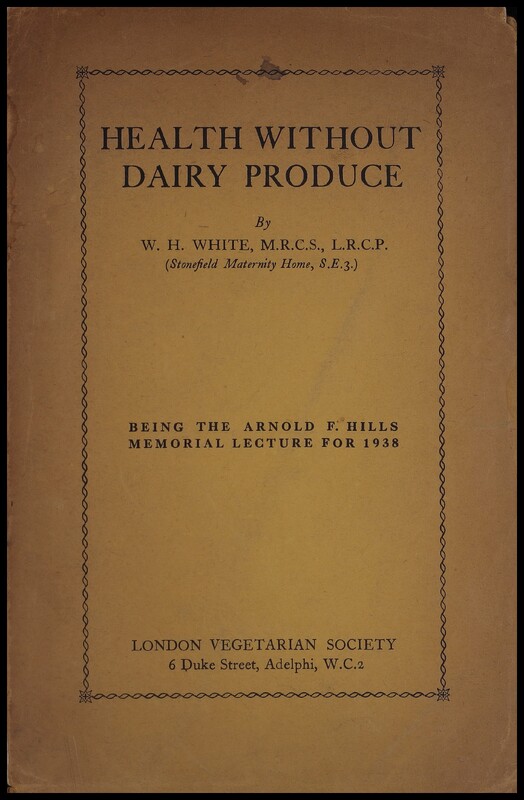 W. H. White was a doctor who advocated vegan diets from infancy, promoting his views through lectures, recipe books, and the maternity homes he managed. This 1938 pamphlet, prompted by the craze for “milk bars,” extols the benefits of a dairy‑free diet and includes various testimonials. White’s views were far from mainstream and milk in particular remained a staple of dietary recommendations.
