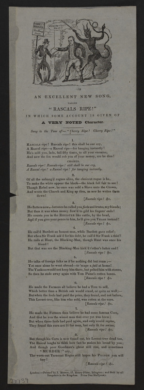 An Excellent New Song, Called "Rascals Ripe!" : In Which Some Account is Given of a Very Noted Character. Sung to the Tune of - "Cherry Ripe! Cherry Ripe!".