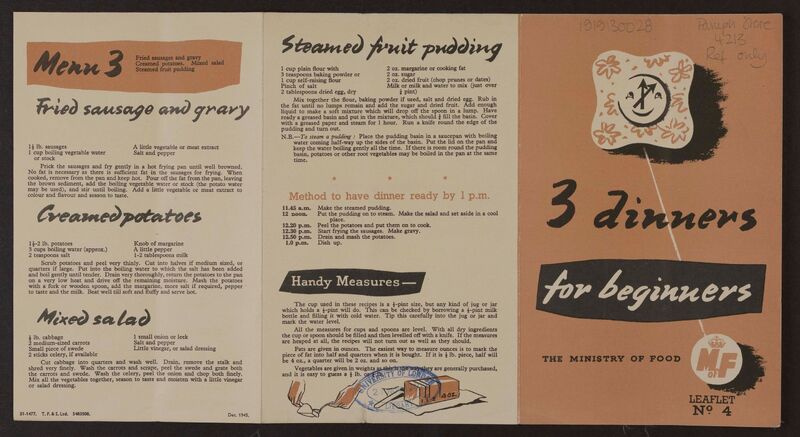 During the Second World War, the Ministries of Health and Information used leaflets and pamphlets to provide advice and spread propaganda. The population faced rationing, so advice on cooking and recipe plans was necessary. Post-war, food supply was still a key issue, and pamphlets emphasised the success and continuing importance of restrictions.